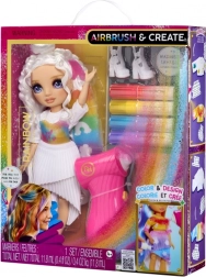 Ontdek een wereld vol creativiteit met de Rainbow High Airbrush & Create-pop. Met deze unieke set kunnen kinderen de stijl van de pop ontwerpen met uitwasbare stiften en een lucht-“airbrush”-tool. De pop is helemaal in het wit en klaar voor jouw ideeën – kleur haar haar, kleding en schoenen. Dankzij de uitwasbare inkt kun je keer op keer creëren, de fantasie prikkelen en creatief spelen zonder rommel.