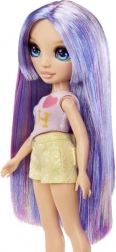 De pop Violet uit de Rainbow High-collectie komt in een trendy outfit met opvallende kleuren en accessoires. Dankzij de gewrichten in armen en benen neemt ze gemakkelijk verschillende poses aan en is ze perfect om mee te spelen, te fotograferen of op de plank te presenteren. Het lange, glanzende haar in tinten paars en lila nodigt uit om te kammen en nieuwe kapsels te creëren.