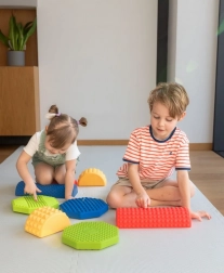 Maak thuis of in de kleuterklas een leuk sensorisch parcours voor kinderen! Deze balanceerset met 8 delen in vrolijke kleuren ondersteunt balans, coördinatie en fijne en grove motoriek. De onderdelen met antisliptextuur bieden rijke tactiele stimulatie en dankzij de draagkracht tot 100 kg zijn ze geschikt voor zowel kinderen als volwassenen, voor training of therapie.