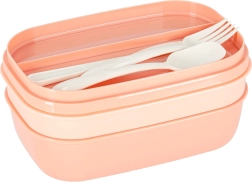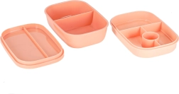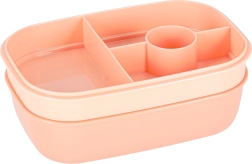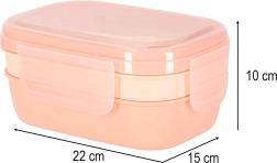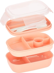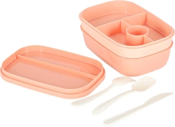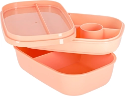 De driedelige constructie met 8 tussenschotten maakt het mogelijk hoofdgerecht, bijgerechten en snacks afzonderlijk in te pakken. Vier clips sluiten het deksel met siliconen afdichting stevig af, zodat de inhoud veilig blijft, zelfs in je tas. De abrikooskleur zorgt voor een moderne uitstraling.