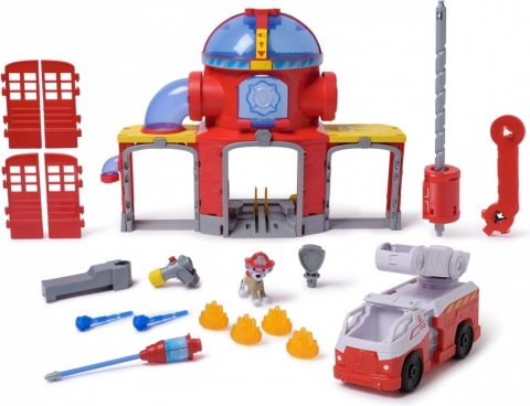 Meerlaagse kazerne met garages, bewegende onderdelen en Marshalls brandweerwagen stimuleert fantasierijk teamwork.