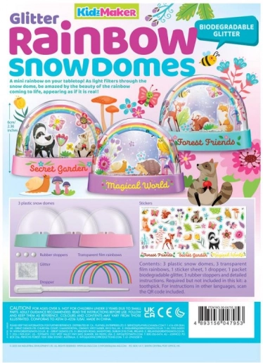 In de doos vind je alles wat je nodig hebt om tot drie sneeuwbollen te maken – van transparante koepels en voetstukken tot kleurrijke glitters, stickers en een duidelijke handleiding. Dankzij de eenvoudige werkwijze is het project ook geschikt voor beginners en ideaal als cadeau of als decoratie voor de kinderkamer.