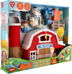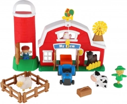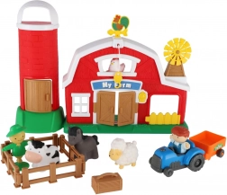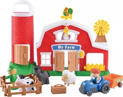 Ontdek de vrolijke wereld van het platteland met deze kleurrijke boerderij voor de allerkleinsten. De grote schuur met silo, tractor, dieren en boer nodigen uit tot eindeloos rollenspel, terwijl bij het inschakelen realistische geluiden klinken die het spel tot leven wekken. Dankzij de stevige plastic constructie en afgeronde randen is de set veilig en geschikt vanaf 18 maanden, en stimuleert hij fantasie en fijne motoriek.