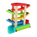 Een kleurrijke cascade-racebaan van kwalitatief hout en kunststof biedt kinderen uren speelplezier. Plaats eenvoudig een autootje op het bovenste platform en kijk hoe het over de hellingen naar de finish zoeft. In de verpakking zitten 4 raceautootjes, ideaal voor kleine kinderhanden. De baan heeft een stabiele constructie, gladde randen en is geschikt voor kinderen vanaf 18 maanden.