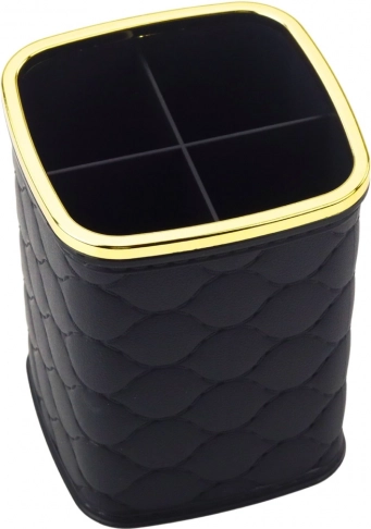 Praktische organizer voor make-upkwasten met 4 afzonderlijke vakken helpt perfecte orde te houden op de kaptafel en in de salon. Dankzij de stabiele en duurzame constructie is hij ideaal voor dagelijks gebruik, gemakkelijk schoon te maken en past hij met zijn elegante zwarte uitvoering in elk interieur.