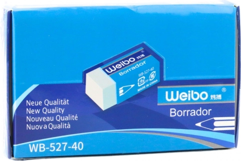 De praktische witte WEIBO gum is ideaal voor school en kantoor. Gemaakt van een zachte synthetische materiaalsoort, verwijdert zij grafiet effectief van papier zonder vegen en zonder het oppervlak te beschadigen. Ze is latexvrij, heeft afgeronde hoeken en compacte afmetingen van 3,5 × 1,5 × 1 cm voor comfortabel dagelijks gebruik.