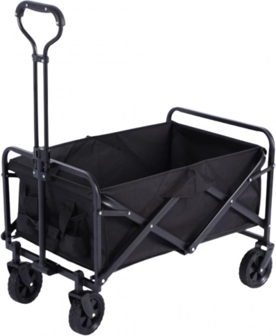 Na gebruik vouw je de kar in een handomdraai op tot compacte afmetingen, zodat hij in de kofferbak of kast past. Praktische zijvakken voor drankjes houden flessen binnen handbereik en de stevige constructie kan ook zwaardere ladingen aan, van tuinmateriaal tot kampeeruitrusting.
