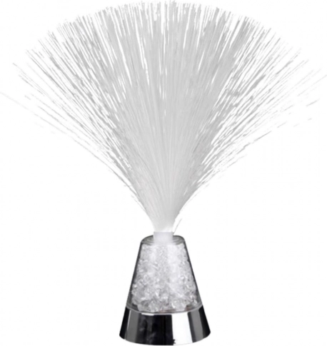 Decoratieve lichtvezel LED-lamp met wisselende kleuren, verchroomde voet en kristaleffect. Draadloos op 3× AA, ideaal voor in huis, de kinderkamer en feestjes.