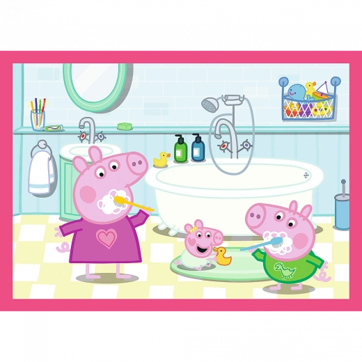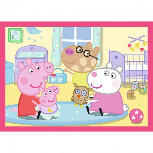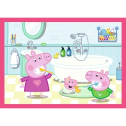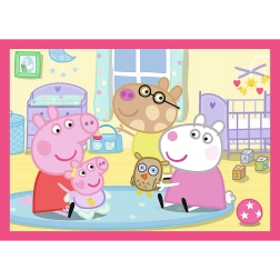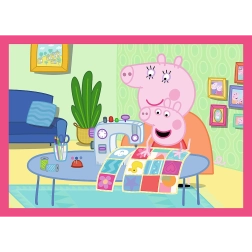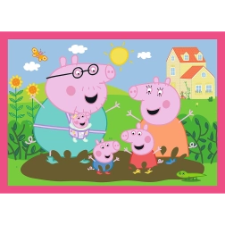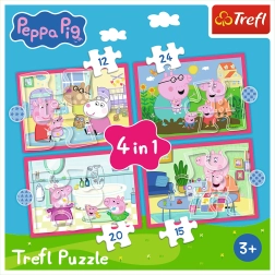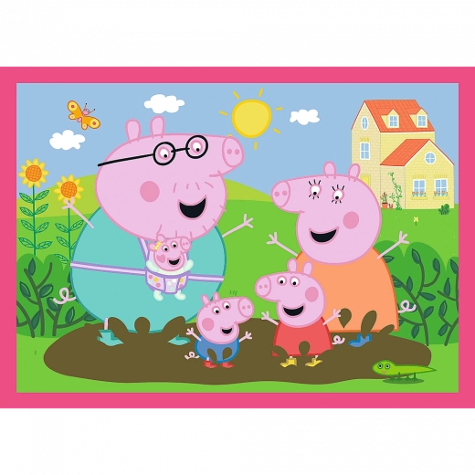 Ontdek de magie van puzzelen met de favoriete helden uit de serie PEPPA PIG. Deze 4-in-1 set biedt vier onafhankelijke afbeeldingen met een verschillend aantal stukjes, waardoor de geleidelijke ontwikkeling van motoriek, geduld en logisch denken wordt gestimuleerd. Elke voltooide afbeelding heeft een formaat van 285 × 205 mm, ideaal voor kleine handjes.