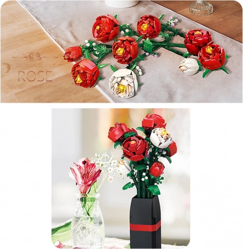 Ontdek de magie van bloemen in bouwvorm. Deze gedetailleerde set laat je een indrukwekkend boeket rozen in een vaas bouwen, een stijlvolle decoratie voor in huis of een hartelijk cadeau. Dankzij de doordachte onderdelen en de duidelijke handleiding verloopt het bouwen soepel en leuk, ook voor beginners.