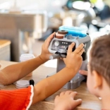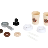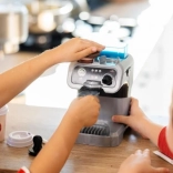 Deze moderne en kindvriendelijke koffiemachine verandert de kinderkeuken in een klein café. Vul het reservoir met water, plaats een capsule, druk deze licht aan met de tamper en druk op de knop – het water stroomt in het bekertje als een echte espresso. Ideaal voor creatief spel met vriendjes, broers en zussen of knuffels.