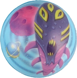 Ontdek fantasierijk speelplezier met deze stuiterbal met ruimte-thema en grappige aliens. Hij is gemaakt van licht foam dat veilig is, zacht aanvoelt en geschikt is voor jongere kinderen. Dankzij de diameter van 6 cm ideaal om mee te spelen thuis, buiten en onderweg.