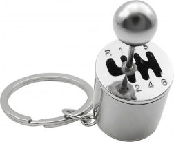 Stijlvolle metalen sleutelhanger in de vorm van een versnellingsbak met een bewegende schakelpook die elke automobilist zal waarderen. Hij is duurzaam, licht en draagbaar en dankzij de stevige metalen ring eenvoudig aan sleutels, rugzak of tas te bevestigen. Perfect als origineel cadeau en als antistress-gadget.