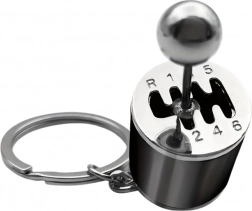 Stijlvolle sleutelhanger in de vorm van een handgeschakelde versnellingsbak die zowel bestuurders als autoliefhebbers zal bevallen. Heeft een robuuste metalen behuizing, een bewegende versnellingspook voor leuk “schakelen”, een duurzame constructie en een praktische metalen ring met kettinkje voor eenvoudig bevestigen aan sleutels, rugzak of tas.