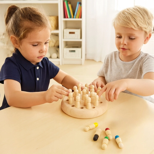Ontdek het leuke logische spel voor kinderen en volwassenen – houten geheugenschaak KRUZZEL. Train je brein, concentratie en geheugen door met de dobbelsteen te gooien en de juiste pionnen te vinden. Het spel is gemaakt van hoogwaardig hout en biedt eenvoudige regels die de hele familie snel onder de knie heeft. Ideaal als cadeau en voor op reis dankzij de compacte verpakking en het duurzame ontwerp, de ontwikkeling van cognitieve vaardigheden en gezinsplezier zonder schermen.