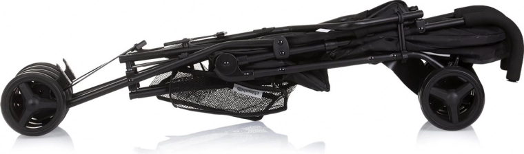 Veiligheid wordt gegarandeerd door 5-punts gordels met zachte padding en een verbonden achterrem. Comfortabele handgrepen met hoogwaardige bekleding liggen prettig in de hand en de ruime boodschappenmand biedt plaats voor aankopen en kinderspullen.