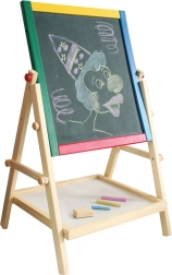Dit houten, dubbelzijdige en multifunctionele bord is een geweldige hulp voor dagelijks spel en leren. Kinderen kunnen schrijven, tekenen en eerste rekenoefeningen maken op de magnetische witte zijde met droog uitwisbaar oppervlak of creatief zijn met krijt op het traditionele zwarte krijtbord. Dankzij de ruime plank zijn alle benodigdheden altijd binnen handbereik.