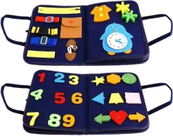 Ontdek speels en leerzaam plezier met het sensorimotorische boek dat kinderlijke vaardigheden op een natuurlijke manier ontwikkelt. Dankzij gevarieerde activiteiten zoals knopen, gespen, ritsen, klittenband en veters oefenen kinderen hun fijne motoriek, logisch denken, concentratie en zintuiglijke waarneming. Het thema van de waterwereld en de dinosauruswereld prikkelt de fantasie en nieuwsgierigheid, terwijl het zachte en lichte ontwerp zorgt voor veilig en comfortabel gebruik thuis en onderweg.
