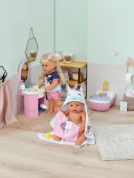 De handdoeken zijn gemaakt van zacht en aangenaam materiaal, dat vriendelijk is voor kinderhandjes en geliefde poppen. De set is compatibel met poppen van 36 cm en 43 cm, en is daarmee een perfecte aanvulling op je accessoires voor dagelijks spel.