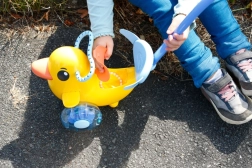 - Leuke rit: transparante wieltjes met speelse kraaltjes.