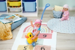 Geniet van leuke wandelingen met je pop dankzij het duwstoeltje Berta van BABY BORN. Het biedt een verstelbare duwstang, een verstelbare rugleuning en ratelende transparante wieltjes vol kraaltjes. De zitting is universeel voor alle BABY BORN-poppen en verrast met een geheim vakje voor kleine schatten.