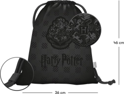 Stijlvolle zak voor schoenen en kleinigheden met het motief van Harry Potter Zweinstein in elegante zwarte kleur. Gemaakt van een stevig, afwasbaar materiaal en voorzien van treksluiting met sterke koorden, die tevens zorgen voor comfortabel dragen op de rug.