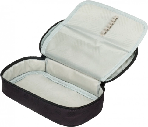 Het hoofdcompartiment biedt plaats aan al je schrijfwaren, terwijl de dubbele uitklapflap met lusjes en vakjes alles perfect geordend houdt.