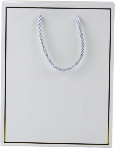 Elegante en praktische cadeautas van hoogwaardig papier met een gouden rand – een uitstekende keuze voor het stijlvol overhandigen van cadeaus. Voorzien van stevige koordhandvatten, een universeel design en een duurzame afwerking voor diverse gelegenheden.