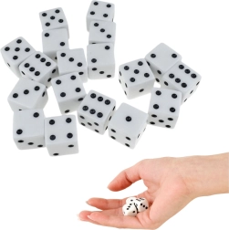Deze universele set dobbelstenen is een perfecte aanvulling op je bord- en gezelschapsspellen. Het standaardformaat van circa 1,5 × 1,5 cm ligt goed in de hand en de contrasterende uitvoering wit met zwarte stippen garandeert uitstekende leesbaarheid bij elke worp.