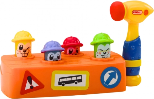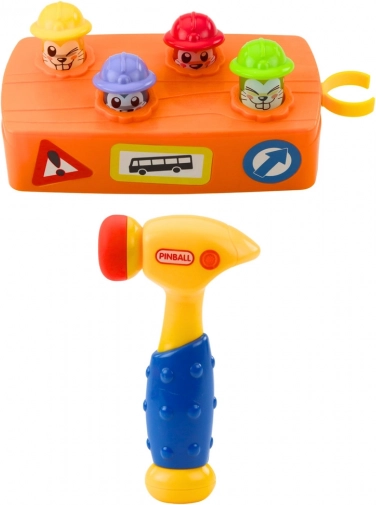 De interactieve “slaan-op-de-mol”-hamer motiveert kinderen tot actief spel. De kleurrijke kopjes lichten op bij een tik en er klinken vrolijke geluidseffecten die de zintuiglijke waarneming en concentratie prikkelen. Dankzij de praktische houder berg je de hamer na het spelen eenvoudig op zijn plek op.