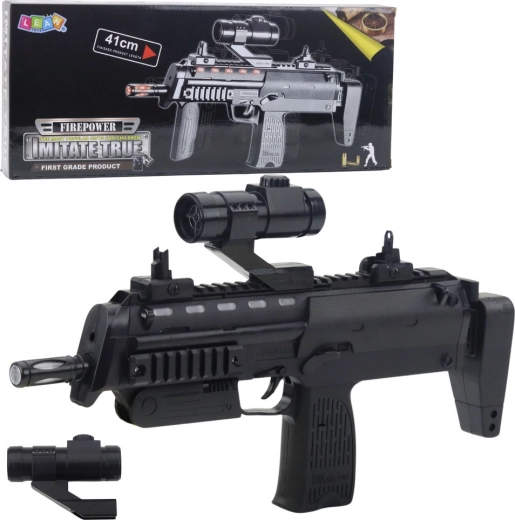 Een realistisch vormgegeven speelgoedmachinegeweer zal kleine fans van actiespellen blij maken. Dankzij de licht- en geluidseffecten en de meegeleverde vizier/scope is het spel nog leuker. De duurzame kunststof uitvoering garandeert veilig gebruik en een lange levensduur, ideaal als cadeau voor kinderen die van dynamisch speelplezier houden.