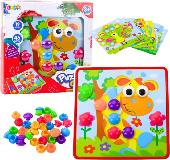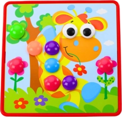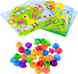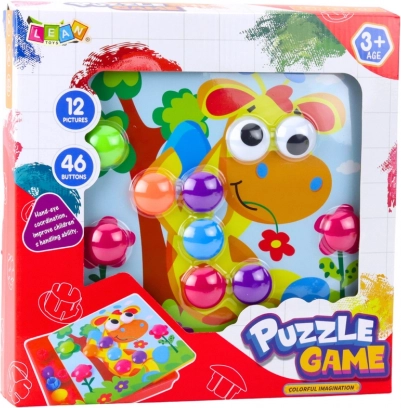 Ontdek een leuk en educatief spel voor de allerkleinsten – de creatieve knopenmozaïek. Kinderen plaatsen kleurrijke “paddenstoel”-knopen in de openingen van afbeeldingen en maken zo hun eigen composities. Zo ontwikkelen ze spelenderwijs fijne motoriek, oog-handcoördinatie, concentratie en kleurherkenning. Veilige materialen, afgeronde vormen en een praktische organizer maken het een geweldige keuze vanaf 3 jaar.