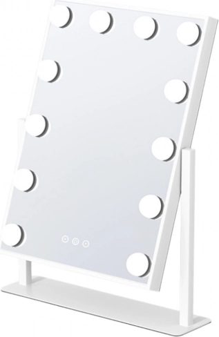 Elegant Hollywood-spiegel met 12 LED-lampen biedt egale en heldere verlichting voor perfect make-upen haarstyling. Het touchpaneel maakt 3 lichtkleuren mogelijk (warm, neutraal, koel wit) en traploos dimmen met geheugenfunctie. De stabiele metalen constructie en het 360° draaibare frame zorgen voor de ideale hoek. Een stijlvolle toevoeging voor kaptafel, badkamer en salon.