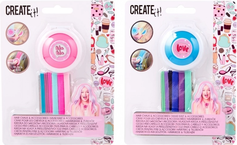 Verander een alledaags kapsel in een kleurrijk avontuur. De set met haarkrijt en haaraccessoires biedt 2 uitwasbare krijtjes waarmee je in een handomdraai zowel opvallende als subtiele gekleurde lokken maakt – zonder permanente verf en zonder het haar te beschadigen. De kleur was je eenvoudig uit met normale shampoo.