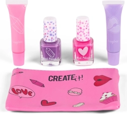 Stijlvolle make-upset met cosmetictasje, ideaal voor jonge meiden die de wereld van make-up veilig willen ontdekken. Bevat 2 lipglosses (6,2 ml), 2 nagellakken (5 ml) en een praktisch cosmetictasje voor eenvoudig opbergen. De producten zijn geschikt voor de kinderhuid, brengen gemakkelijk aan en zijn dankzij de compacte afmetingen perfect voor thuis en onderweg.