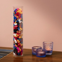 De praktische tube of doos houdt de stukjes bij elkaar, is eenvoudig mee te nemen en bespaart ruimte in de kinderkamer en onderweg.
