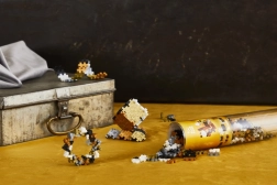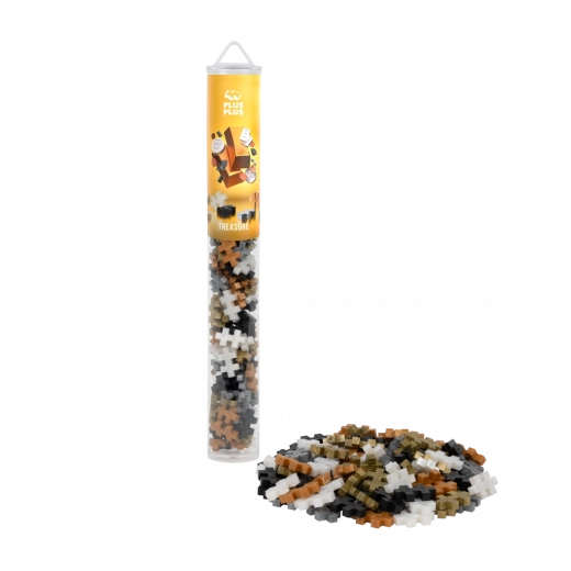 De Plus-Plus Schat set bevat 100 originele stukjes in de kleuren goud, zilver, koper, zwart en parelmoer. De unieke vorm van de stukjes maakt het eenvoudig om zowel 2D-mozaïeken als 3D-modellen te bouwen – van simpele ideeën tot verfijnde constructies. De praktische tube is perfect voor onderweg, op de opvang/kleuterschool en thuis.