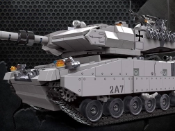 Deze gedetailleerde bouwset vangt trouw de silhouet en kenmerken van de echte LEOPARD 2A7-tank – van de draaibare koepel met verstelbare loop, via reactieve pantsermodules, tot aan realistische rupsbanden die het model gemakkelijk laten bewegen over diverse ondergronden. De uniforme grijze camouflage benadrukt de authentieke militaire uitstraling.