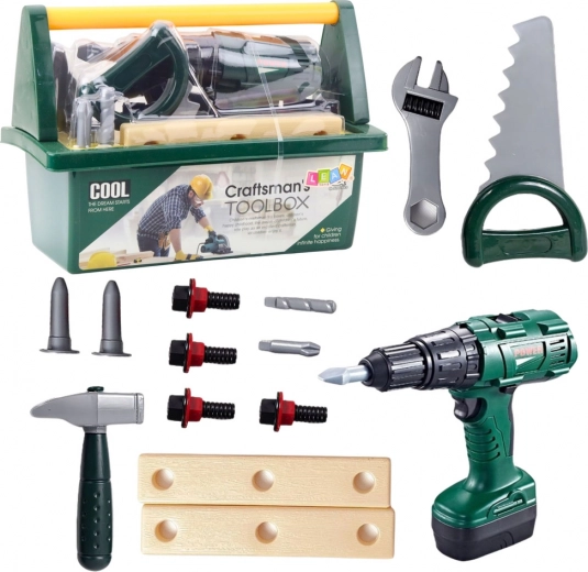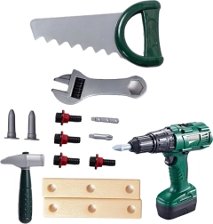 Deze kinder-gereedschapsset in een draagbare koffer laat je kind volwassenen nadoen en de wereld van klussen ontdekken. De accu-schroevendraaier op batterijen bootst echt gereedschap na, waardoor het spel aantrekkelijk, realistisch en nieuwsgierigheid-prikkelend is. De set is perfect voor zelfstandig én samen spelen en leert samenwerken, geduld en oog-handcoördinatie.