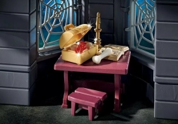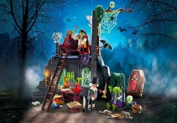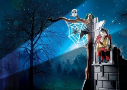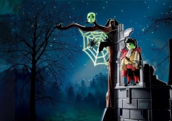 De PLAYMOBIL promo set bevat zorgvuldig vormgegeven kasteelruïnes, 3 figuren, een kist/tombe, meerdere spinnen, vleermuizen en andere griezelelementen die het spel spannend en leuk maken.
