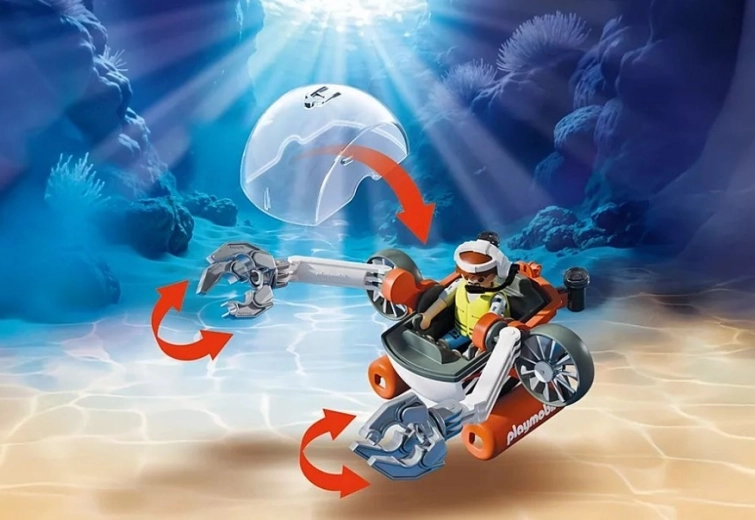 Ga op een avontuurlijke expeditie naar de diepte van de oceaan met de PLAYMOBIL-duikboot, die dankzij de beweegbare armen en de afneembare koepel gemakkelijk de verborgen kist met goud ontdekt. Laat je fantasie de vrije loop, ontwijk de patrouillerende hamerhaai en geniet van actiespel, realistische details en drijf-/duikfuncties.