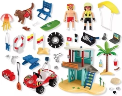 Beleef zomerse avonturen met de PLAYMOBIL strandset! Reddingstoren, snelle strandbuggy, dappere redder met hond en veel accessoires voor spannende reddingsmissies. Ideaal voor kinderen die van strand, zee en meeslepende verhalen houden.
