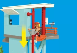 Deze gedetailleerde set bevat een reddingstoren met twee verdiepingen met een snelle glijstang, een volledig uitgerust redderspost en beneden een serviceruimte met gereedschap. De set omvat ook een strandbuggy voor acties verder van de toren, een reddingsboard en een trouwe reddingshond met vest.