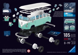 Bouw een iconische wagen met de 3D-puzzel van RAVENSBURGER – de stijlvolle VW T1 Bulli. De stabiele kunststof stukjes passen precies in elkaar zonder lijm, waardoor het afgewerkte model stevig blijft. Geniet van realistische details, duurzame afwerking en eenvoudig onderhoud – een vochtige doek is voldoende. Ideaal cadeau voor autofans en creatieve bouwers vanaf 8 jaar.