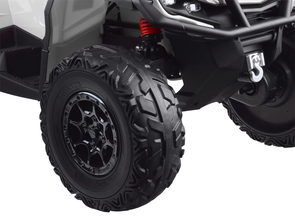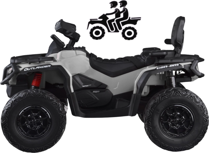 De robuuste kinderquad CAN-AM OUTLANDER 4x4 24V is gemaakt voor jonge liefhebbers van terreinrijden. Vier motoren van 200 W (samen 800 W) en de schakelbare 2- of 4-wielaandrijving kunnen uit de voeten op parkpaden en licht terrein. Zachte EVA-banden en achtervering garanderen een stille, vloeiende en comfortabele rit.