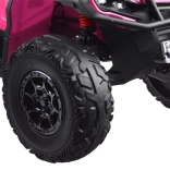 Deze tweezits kinderquad, geïnspireerd op de legendarische CAN-AM OUTLANDER, kan parkpaden, de binnenplaats en licht terrein aan. 4x4‑aandrijving met vier motoren van 200 W op elk wiel levert trekkracht en zekerheid, terwijl zachte EVA‑wielen en achtervering oneffenheden dempen. Ergonomisch stuur en een soepele start dragen bij aan veilige bediening voor kinderen vanaf 3 jaar.