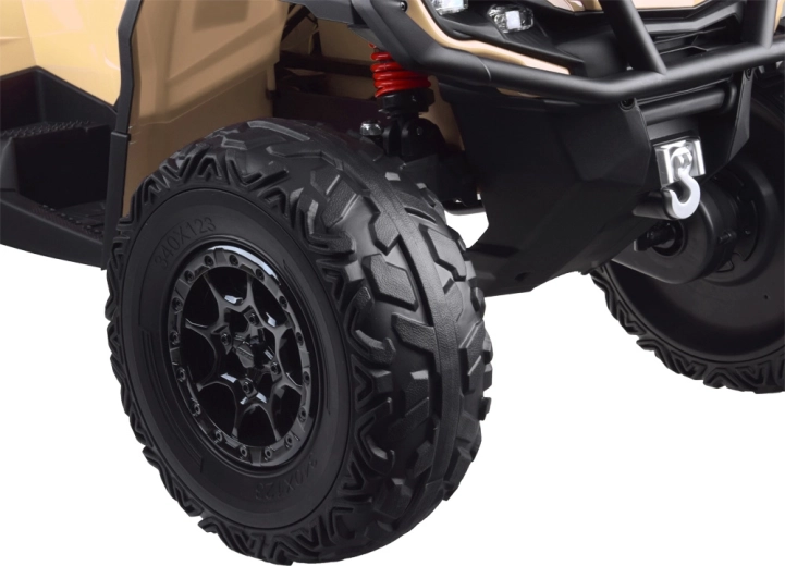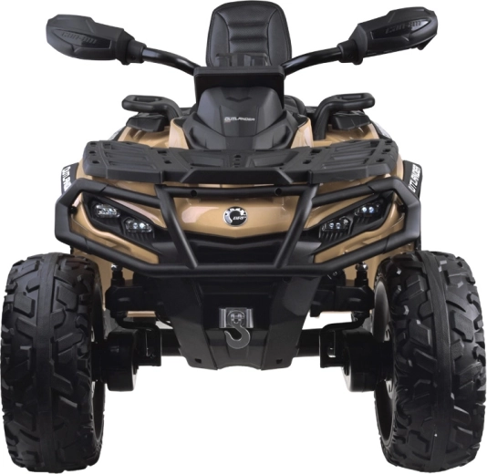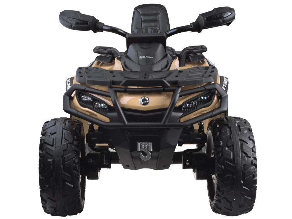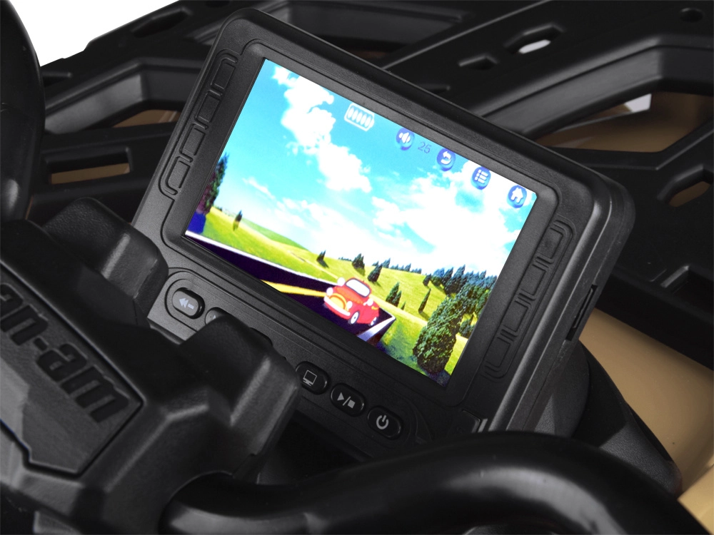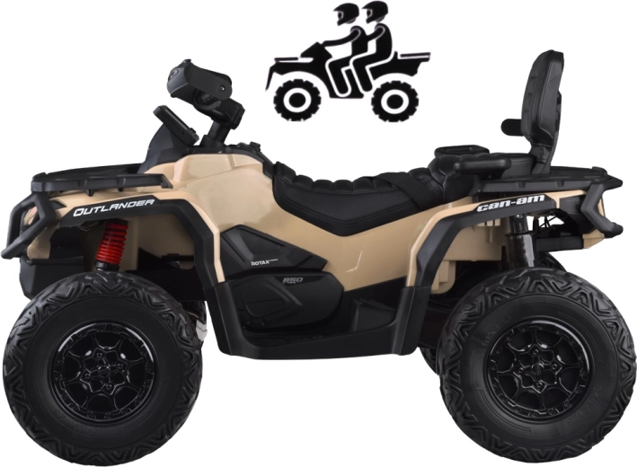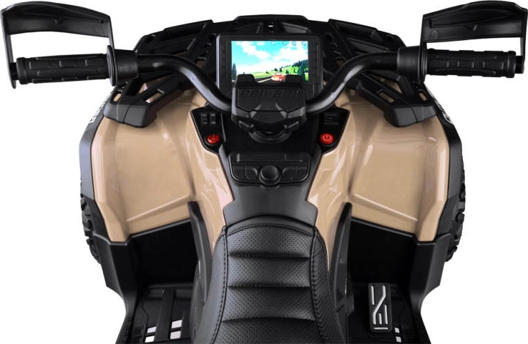 De tweepersoons kinderquad CAN-AM OUTLANDER 4x4 op 24V accu biedt vermogen tot 800 W, aandrijving op 2/4 wielen, zachte EVA-banden en achtervering voor comfortabel en veilig rijden. Een stijlvol LED‑paneel met muziek, USB en FM‑radio, een gevloerde dubbele zitting van ecoleer met gordels en effectvolle LED‑verlichting zorgen voor eindeloos plezier bij elke rit.