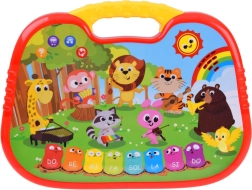 • Melodie-afspeelmodus – elke toetsaanslag speelt de volgende noot van een bekend liedje (bijv. Old MacDonald, Twinkle Little Star). De keuze van het nummer wijzig je met de rode knop met pijlen.