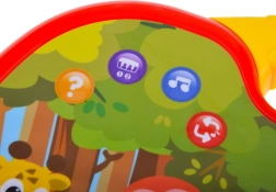 - Namen leren: na het indrukken van een afbeelding zegt het speelgoed de naam van het dier/instrument; na het indrukken van de rode knop en opnieuw de afbeelding speelt het hun geluiden af.