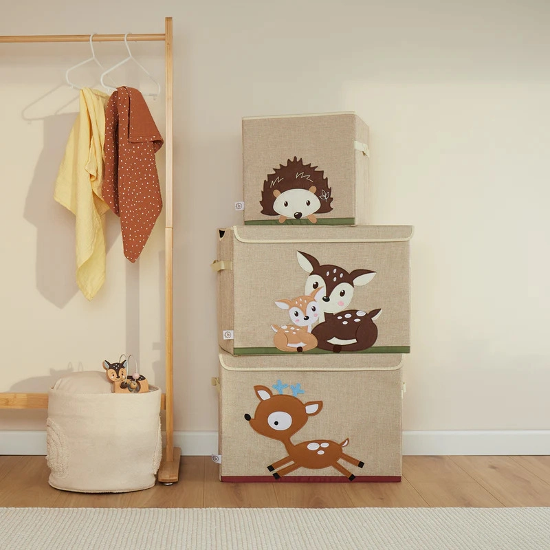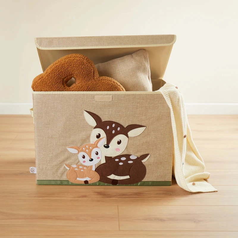 Het schattige design met hertjes maakt elke kinderkamer gezelliger en biedt tegelijk praktische opbergruimte. De box is stabiel maar licht, zodat zowel kinderen als ouders hem gemakkelijk kunnen verplaatsen. De inklapbare constructie bespaart ruimte en het deksel met klittenband houdt de inhoud netjes uit het zicht.